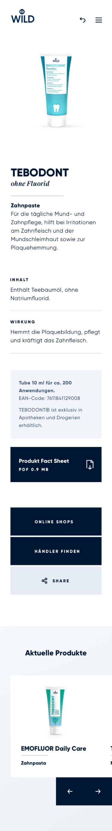Das Familienunternehmen Dr. Wild [&] Co. AG entwickelt, produziert und verkauft Heilmittel, Oral Care Produkte sowie Kosmetika und weitere Medizinprodukte. Für das Basler Pharmaunternehmen entstand in Zusammenarbeit mit Wirz die neue Corporate Website. Beim mehrsprachigen Onlineauftritt des Unternehmens waren wir nebst der Frontend-Umsetzung für die komplette CMS-Integration auf Contao-Basis verantwortlich. Die Onlinepräsenz bietet einen umfassenden Produktekatalog mit Filter- und Suchfunktion.